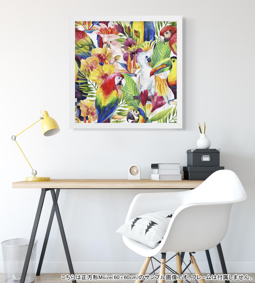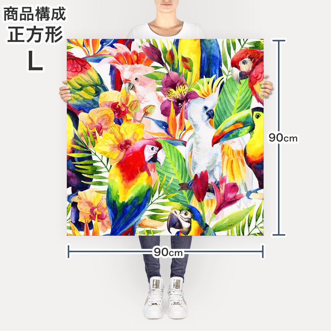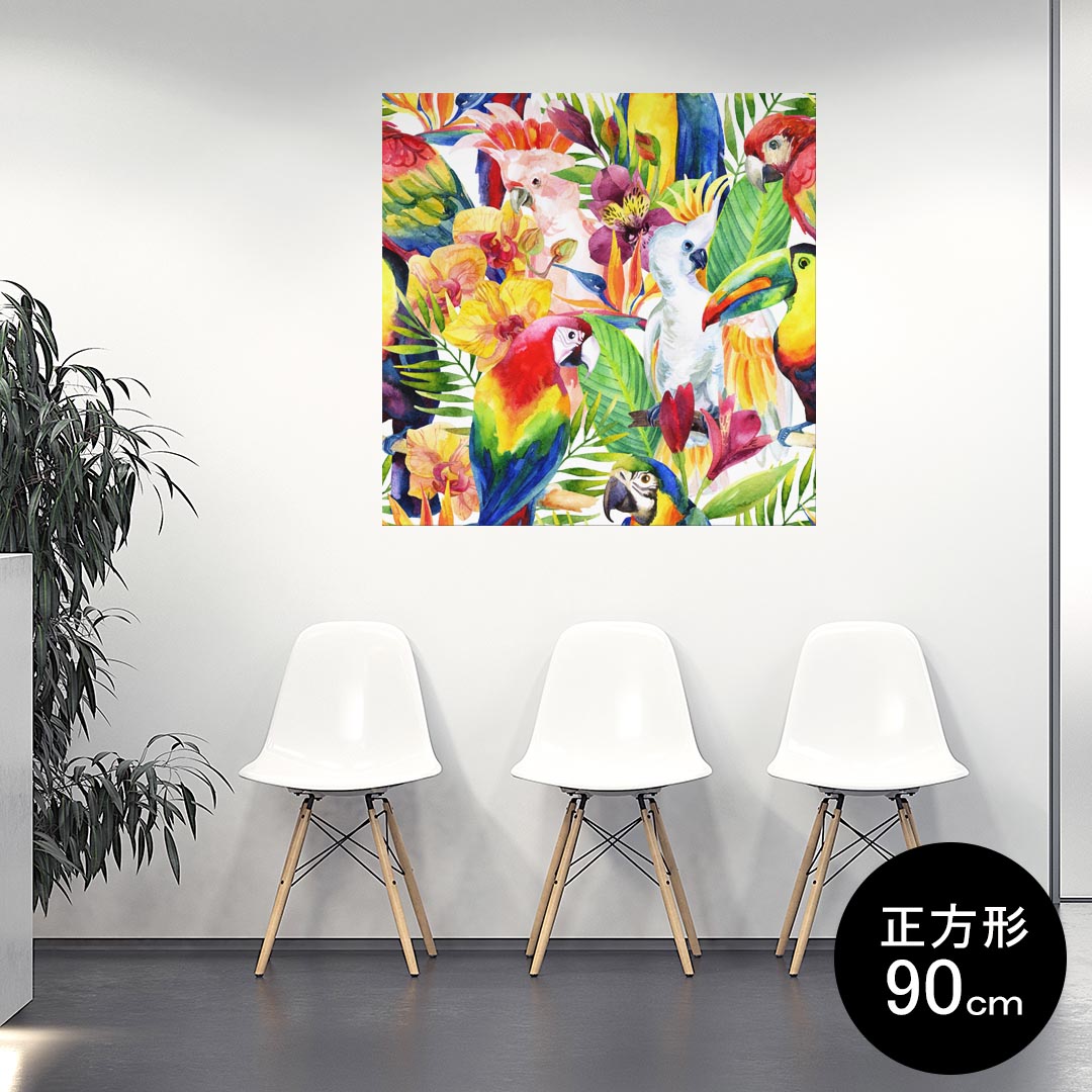 ポスター ウォールステッカー シール式ステッカー 飾り 90×90cm Lsize 正方形 壁 インテリア おしゃれ 剥がせる wall sticker poster 012543 鳥 カラフル 南国