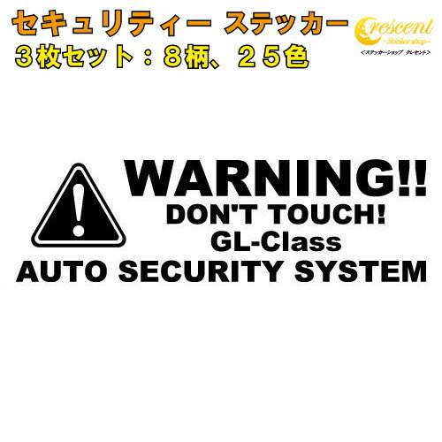 メルセデス ベンツ GL-Class セキュリティー ステッカー 3枚セット 全25色 【ダミーセキュリティー 車 シール デカール フィルム 盗難防止 防犯 車上荒らし ワーニング warning カッティング】【名入れ】【文字 変更可】