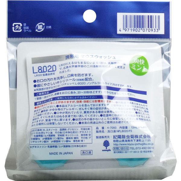 クチュッペ L-8020 マウスウォッシュ 爽快ミント ポーションタイプ 3個入